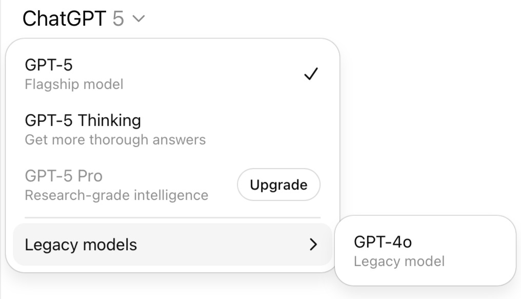 Eso significa que todos tus chats, incluyendo los antiguos, desde ahora los maneja GPT-5 sin importar qué modelo hayas seleccionado antes.