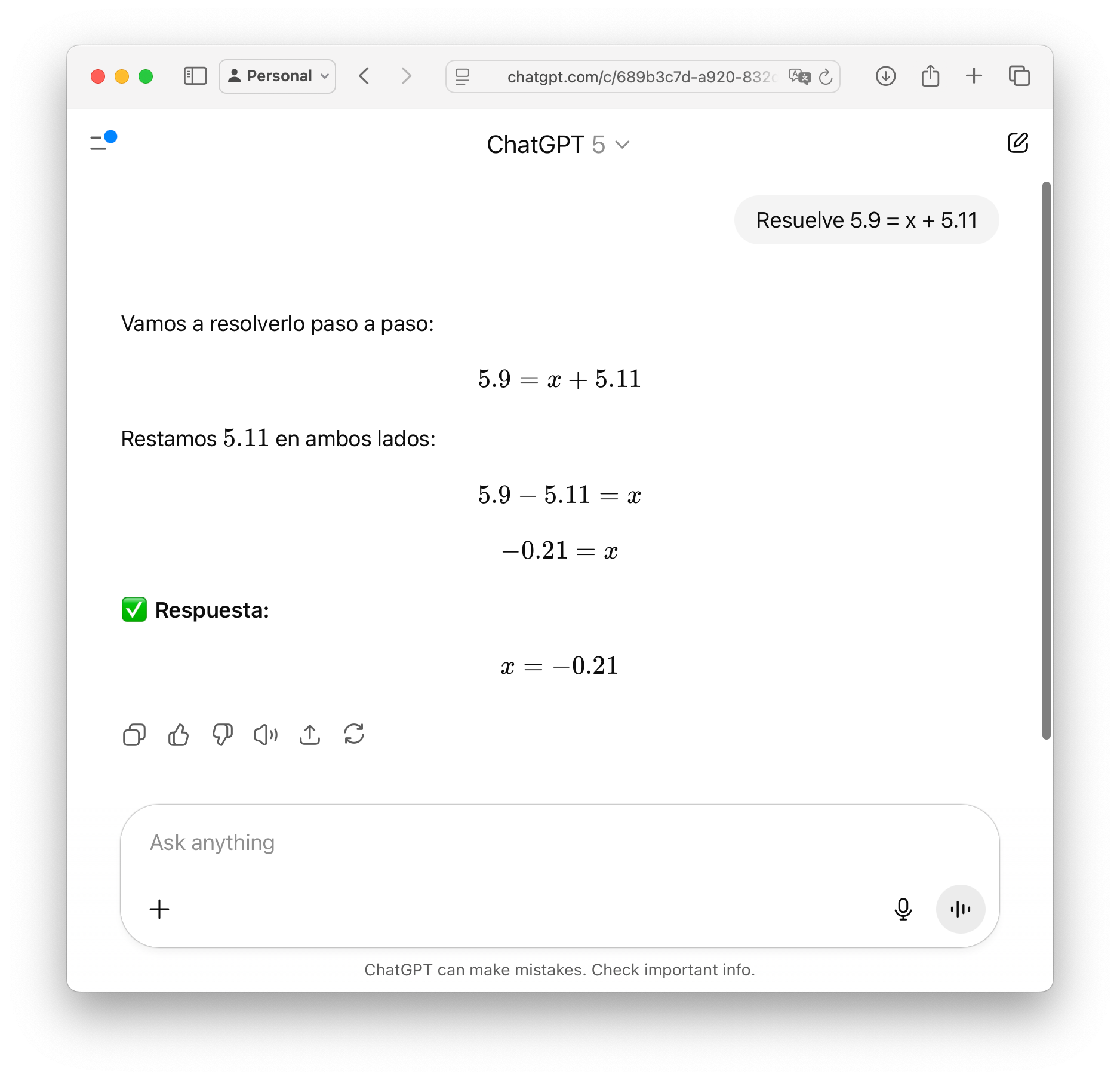 Hice la prueba con una operación matemática sencilla que vi por ahí, y ChatGPT falló miserablemente.