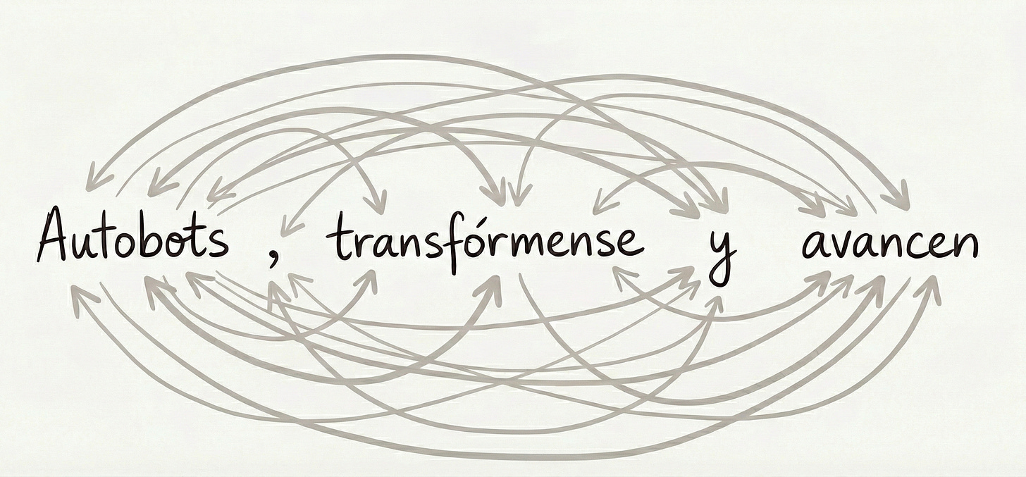 Para que una computadora pueda entender esta frase no le sirven sólo palabras sueltas, tiene que saber cómo se conectan estas palabras. Necesita que cada palabra identifique qué tan fuerte es su relación con las demás. Para ponerlo de otra manera, cada palabra se da cuenta de qué otras palabras son importantes para entenderla. Eso se llama atención.