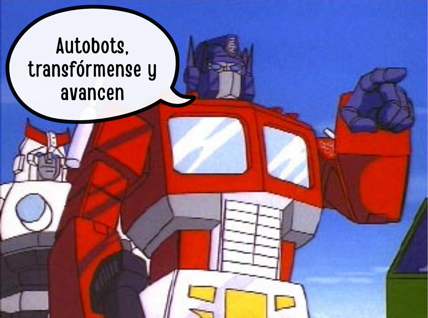 Te das cuenta automáticamente que alguien le está dando una orden a los Autobots y que esa orden es que se primero se transformen y que luego avancen. (Me imagino que también escuchaste la voz de Optimus Prime diciéndolo).