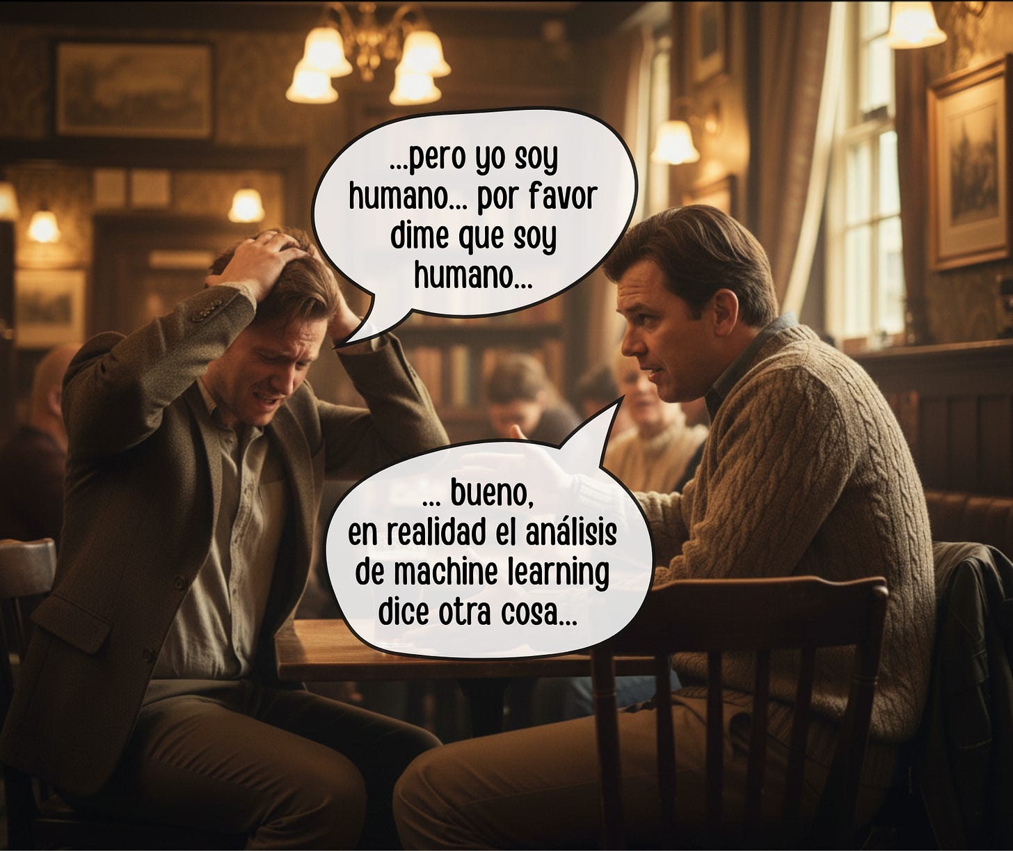 “[indignado] ¡Ahora son las máquinas las que nos dicen si somos humanos o no! No les creas [/indignado]” (Germán)