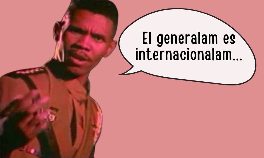 Breve paréntesis: El General fue un pionero del reguetón, si en los 90s tenias edad para ir a alguna fiesta (eso es hace más de 25 años), probablemente hayas entendido el chiste.