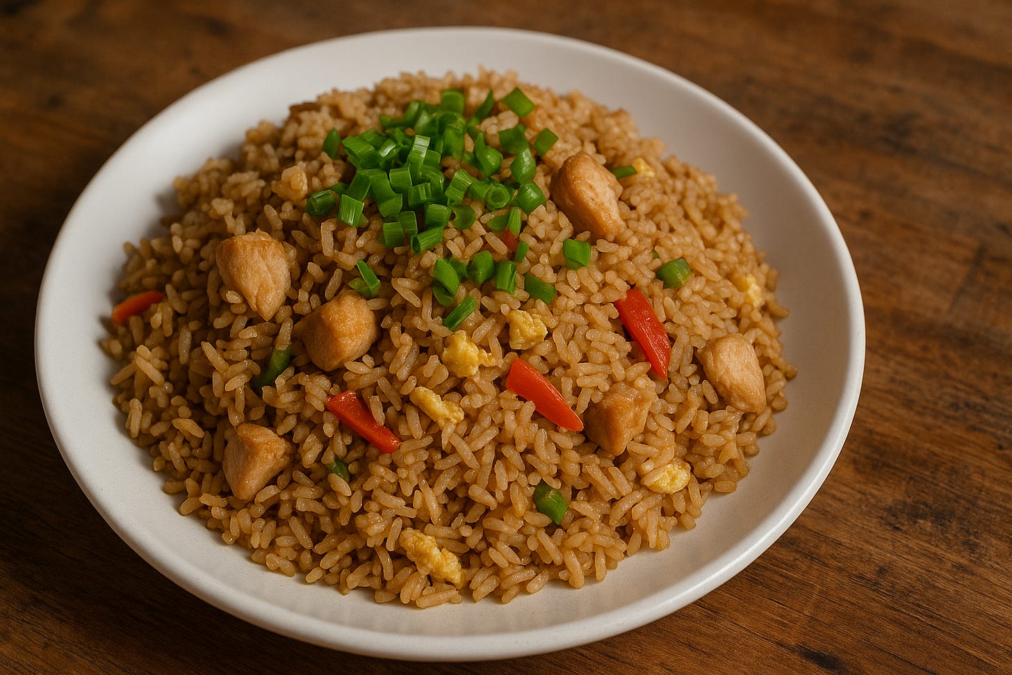 Ingredientes: Arroz de ayer, sobras de carne, cebolla china, huevo, salsa de soja.