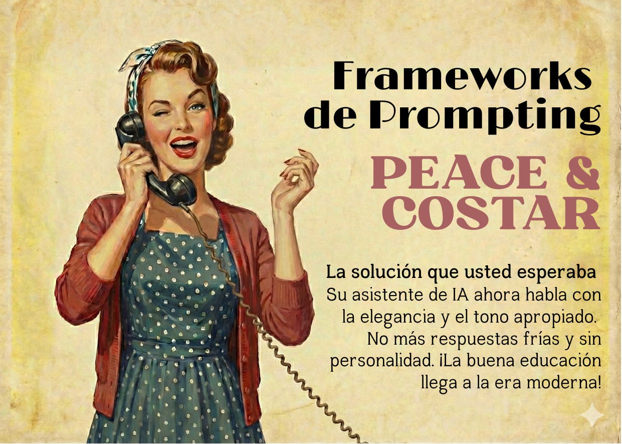 Bienvenido a la tercera entrega de la saga de frameworks de prompting. En la parte I hablamos de RTF y RAILS, en la parte II (la venganza) de CRISP y CLEAR, y como si necesitáramos más acrónimos, hoy te traigo la parte III (el retorno del prompt), donde vamos a ver dos frameworks más: PEACE y COSTAR.