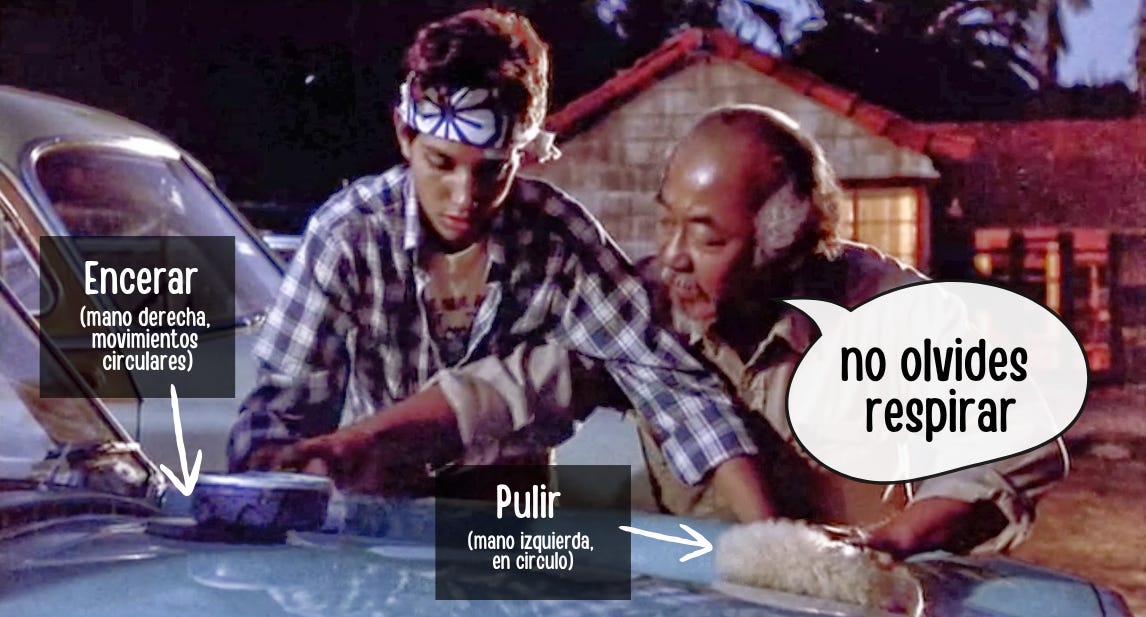 Es como si alguien prometiera enseñarte karate e inmediatamente te pusiera a encerar y pulir sus cuatro autos clásicos de una manera ultra específica, sin explicarte por qué.