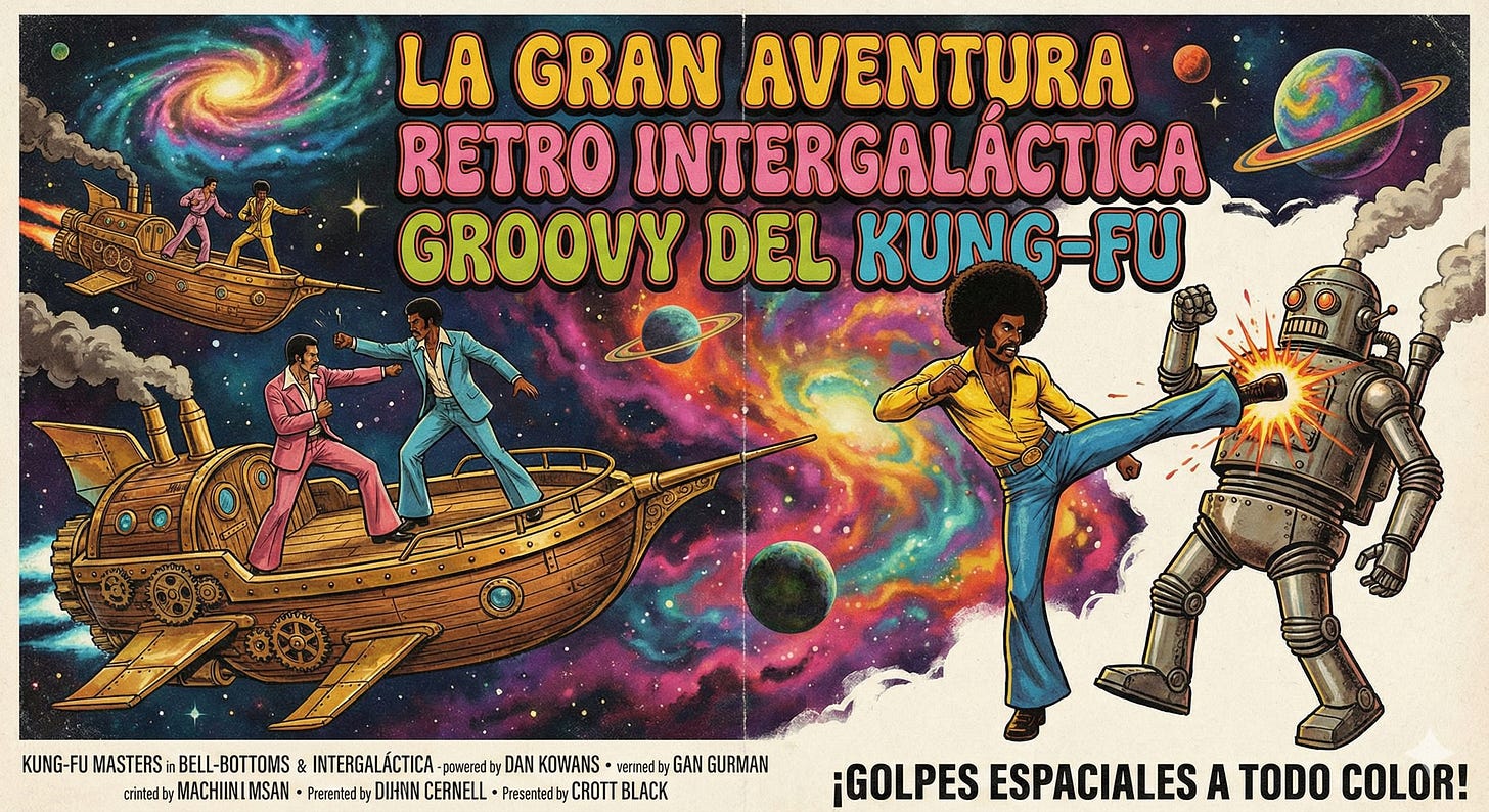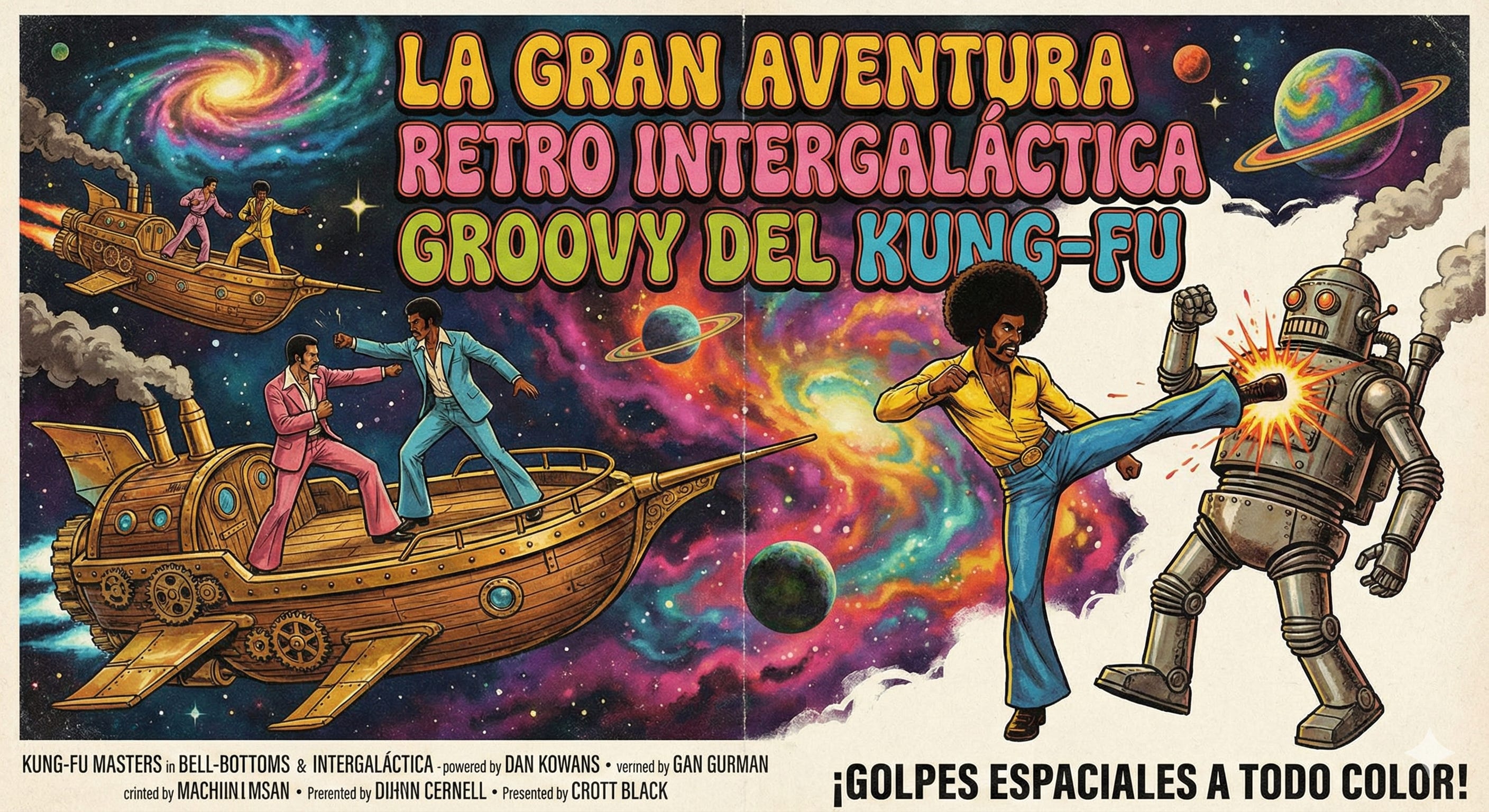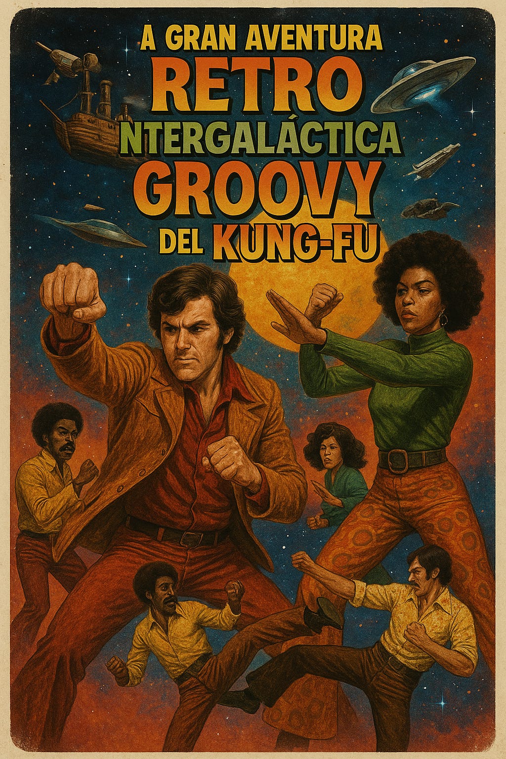 Ahora a ponerle titulo: “La gran aventura retro intergaláctica groovy del kung-fu”