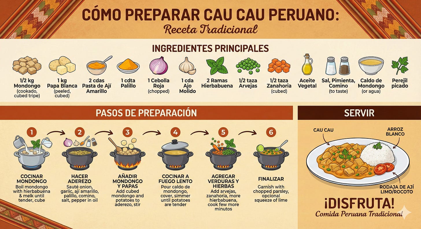 Crea una infografía que muestre cómo preparar cau cauChatGPT y su “infografía”